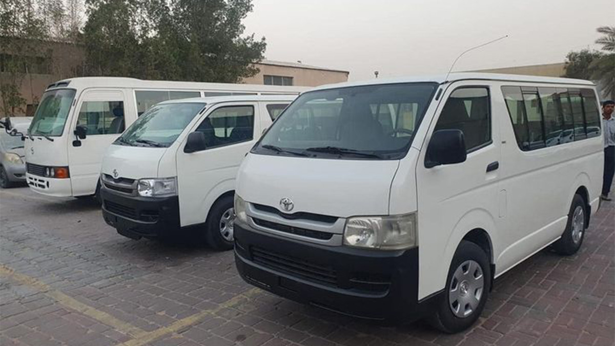 En effet, 12 bus de 30 places assises, de marque Toyota COASTER, ont été acquis pour le transport du personnel administratif, et 14 minibus ont été destinés aux directeurs des services.