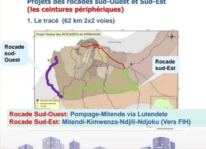 Le Président de la République, Félix-Antoine Tshisekedi, a donné le coup d’envoi des travaux de construction des rocades Sud-Ouest et Sud-Est de la ville de Kinshasa ce samedi 22 juin après-midi, à partir de Mitendi. Cette route périphérique, qui constituera une voie rapide autour d’une partie de la ville, vise à désengorger les artères du centre de Kinshasa.