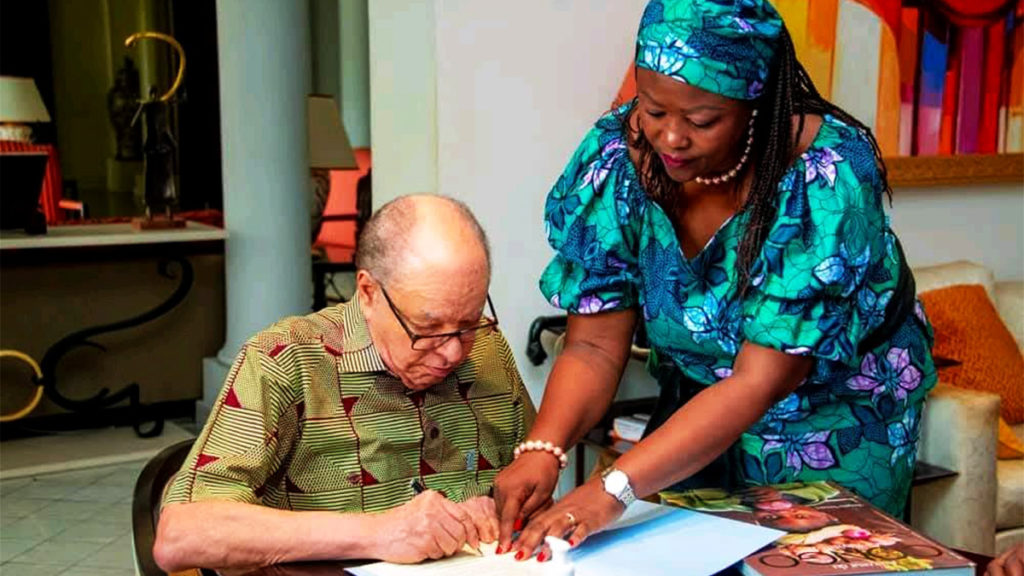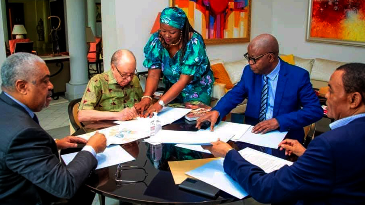 Léon Kengo Wa Dondo signant la déclaration commune (ph droits tiers)